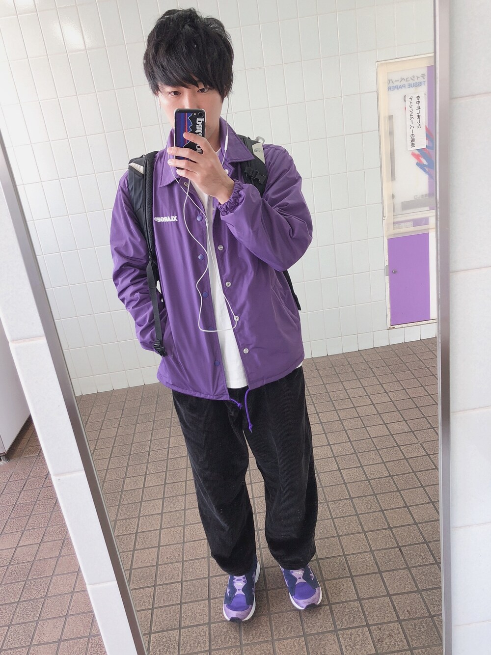 やっと着たラージの紫のコーチジャケット 裏の刺繍もめっちゃ可愛くて最高です! パーカーにONしたい・・・また着ます。