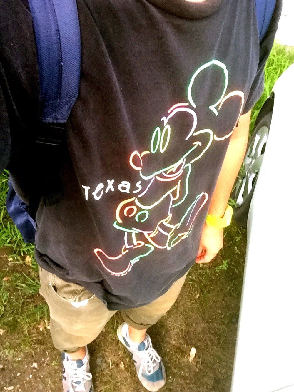 今日は古着屋で見つけたカラフルミッキーで出勤しました\( ˙ω˙ )/ いやー雨降ったり晴れたりで大変だね(º_º)