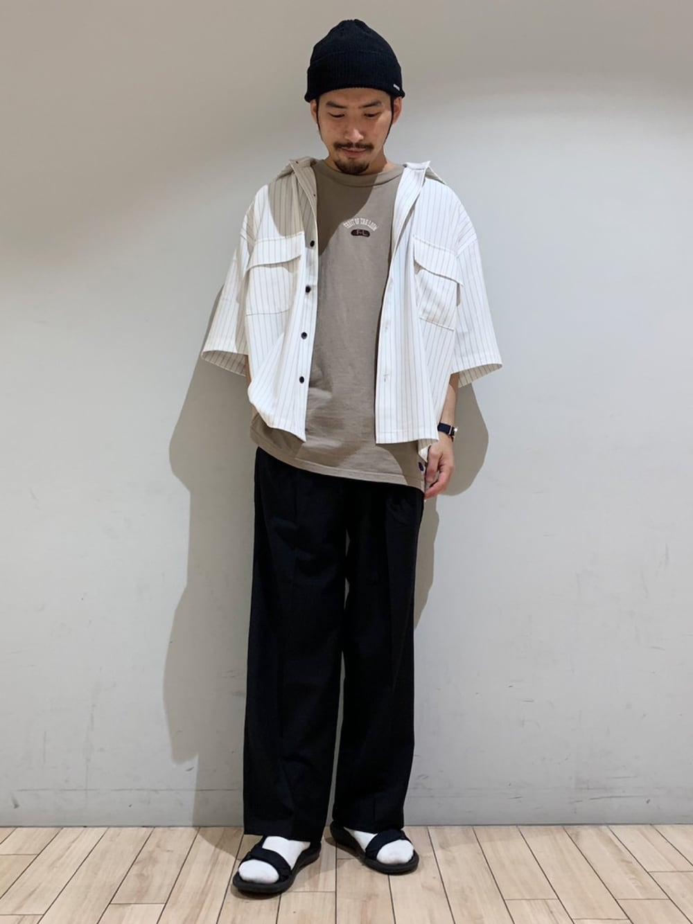 皆さまこんにちは。 いつもご覧頂きありがとうございます。 今回は新作のビッグシルエットシャツとワイドパンツを使用した夏コーデ ・ピンストライプモンスタービッグシャツ ¥5,900+tax ・クールサーフェイスワイドパンツ ¥5,900+tax トップス、パンツ共に落ち感のある素材でビッグシルエットながらもすっきりした印象かつ、こなれた雰囲気で着て頂けます。 ジュンレッドの8月おすすめスタイルとなっておりますので是非店頭でお試しください。