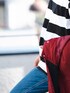 「今回はSHARE ボーダーTとフード付きスタジャンコーデ😎 アウターはレディースですが、メンズでもバッチリ似合いますよ〜!」 (※デニム, スニーカー, 腕時計, サングラス, リュックは私物で👖👟⌚🕶️🎒着用アイテムの詳細はプロフィールのURLよりご覧になることができます🙏)