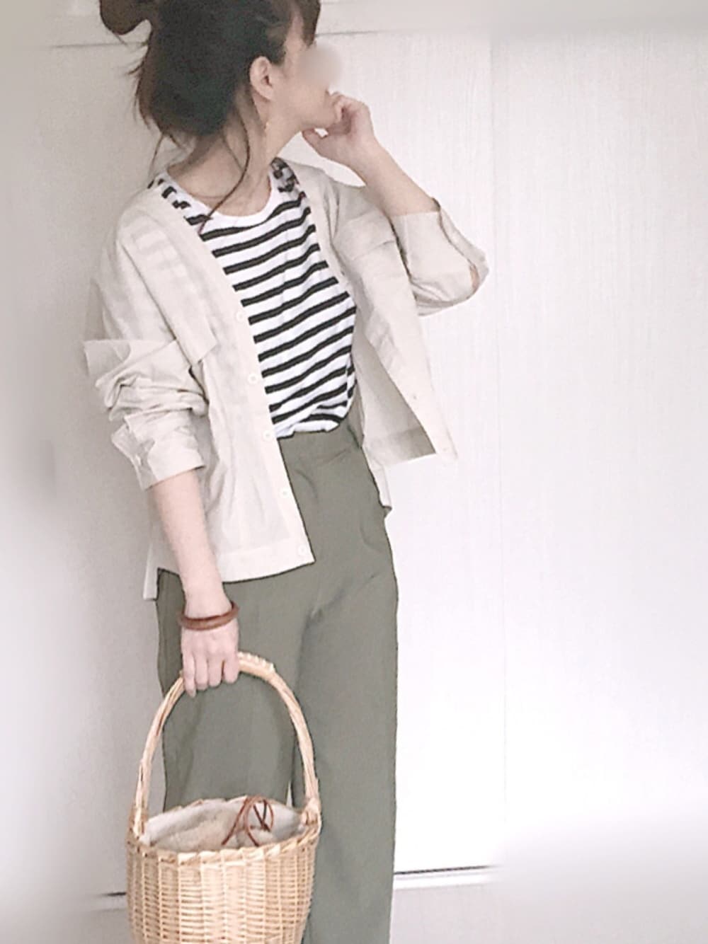 Ⓜ︎のシャツ/ブラウス「ポケットVネックシャツ 872307」を使ったコーディネート