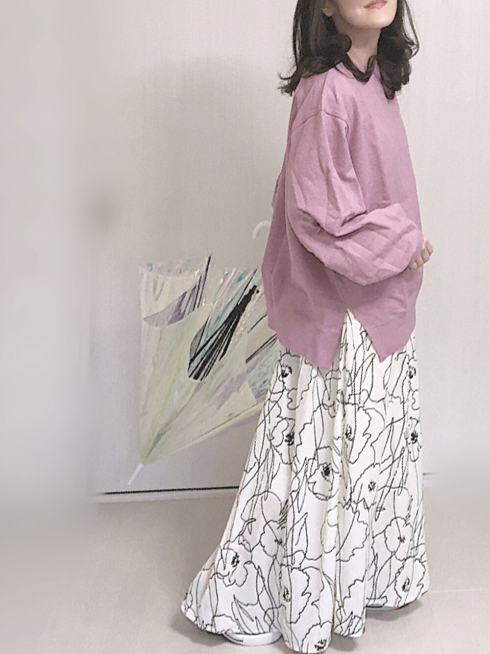 Ⓜ︎の長傘「オーロラクリアアンブレラ」を使ったコーディネート