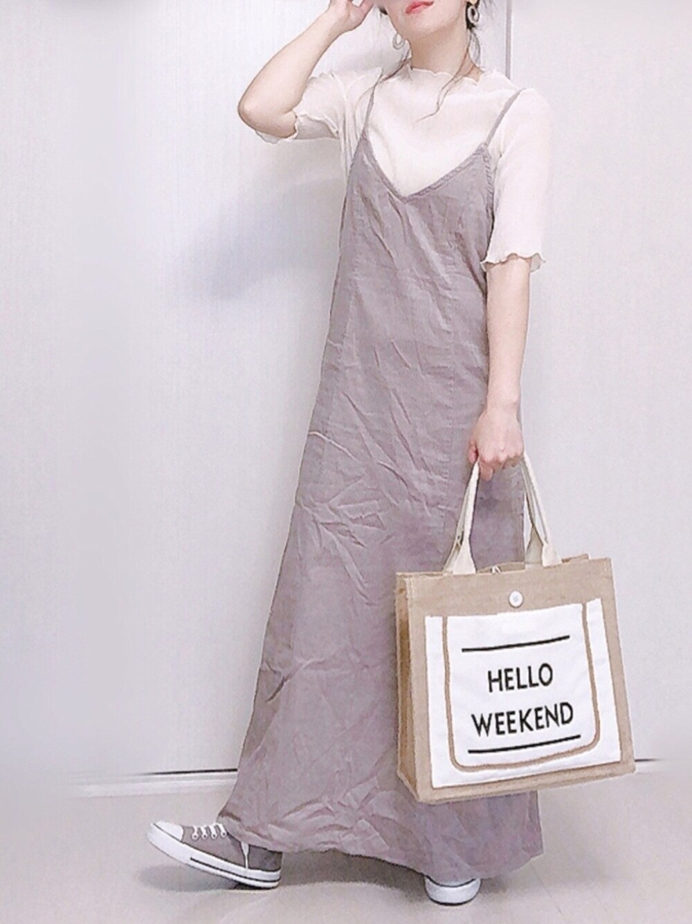 Ⓜ︎のワンピース「エアリーコーデュロイキャミワンピース 914928」を使ったコーディネート