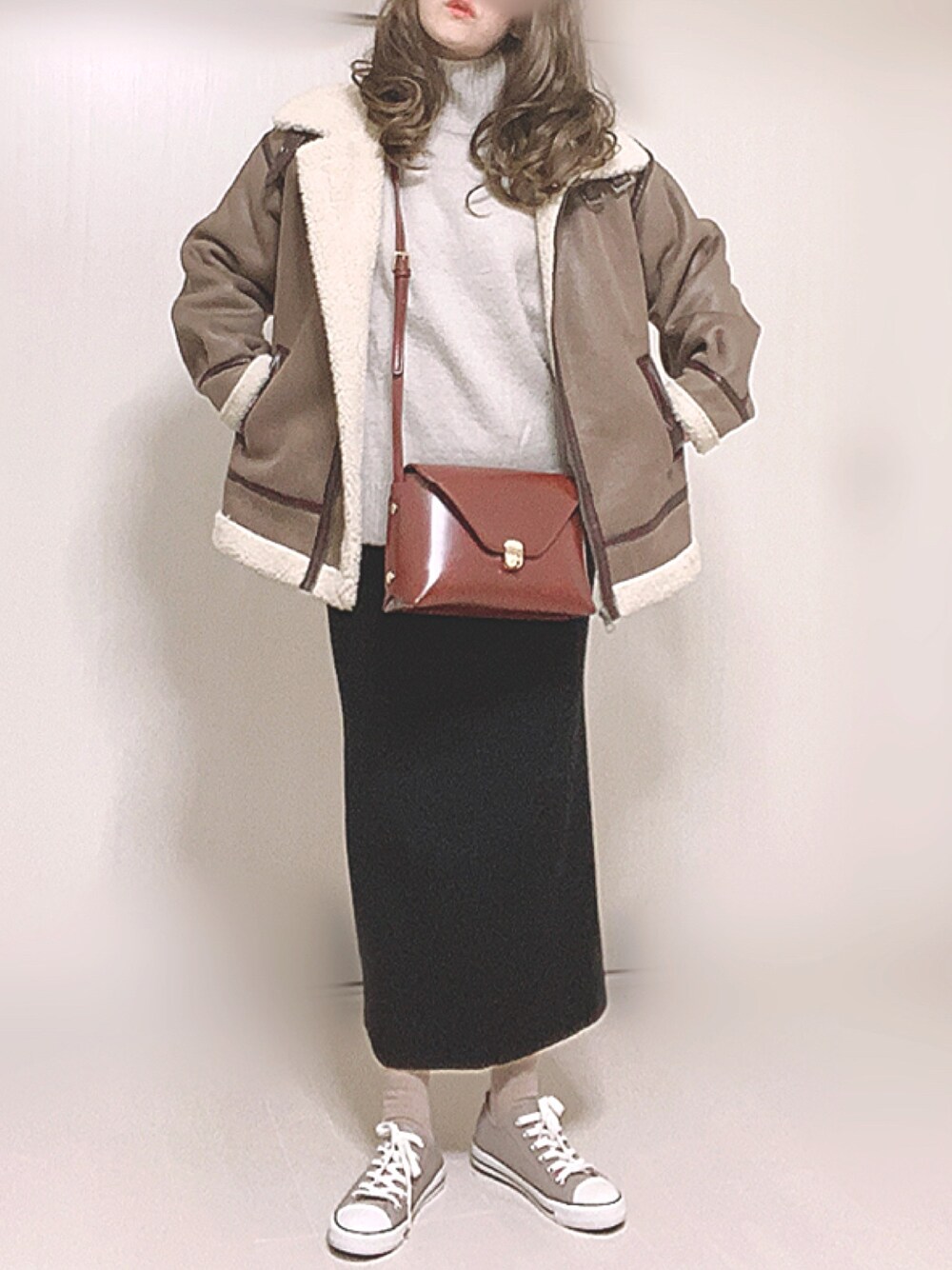 Ⓜ︎のムートンコート「【forksy.】オーバーサイズ フェイクムートン B-3ジャケット/フライトジャケット」を使ったコーディネート