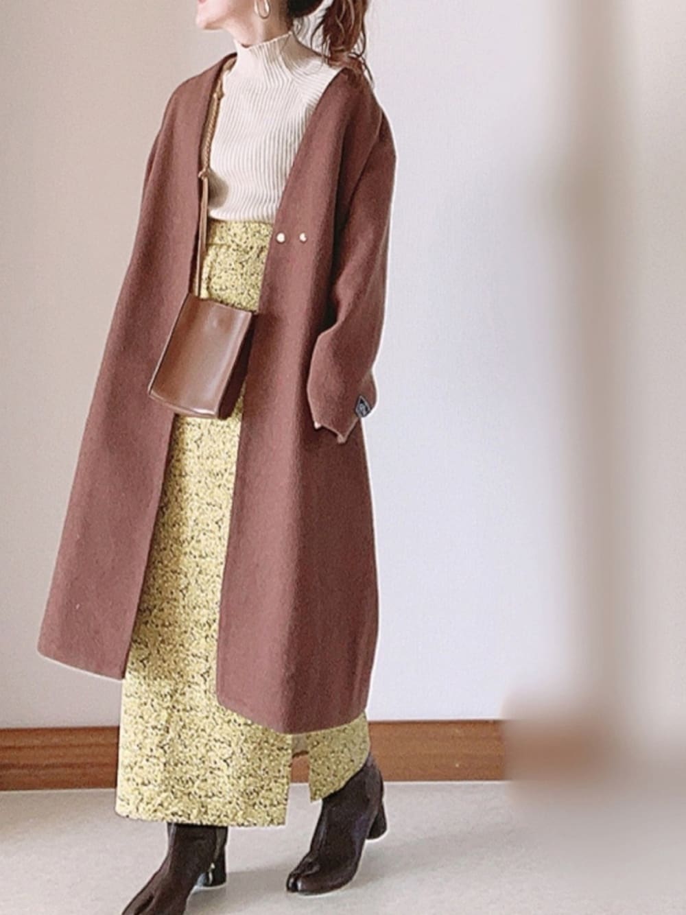 #私の推しブランド mysty woman:ノーカラーコート Fabby fabby:足袋ブーツ