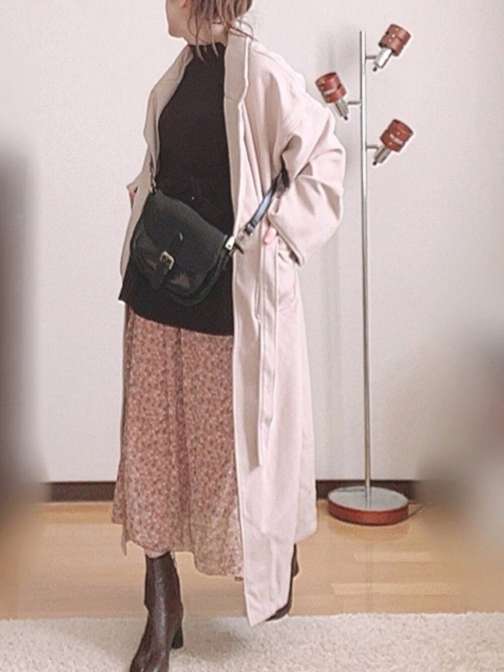 ⚪️sakishimatokyoさんの。 エリツキロングチェスターコート。 ライトベージュを着用しています。 パステルピンクのような淡いカラーでとても可愛い色味です。 ピンクの花柄のワンピースにsakishimatokyoさんのニットベストを合わせて大人ガーリーに。 zozotownにて驚きの価格で販売しています✨ 🎀いつも、お気に入り、いいね、フォルダINしてくださっている皆様ありがとうございます🙇♀️