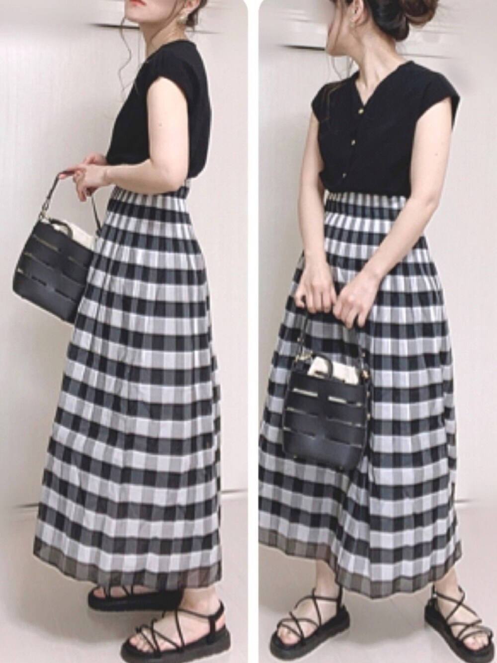 ◾️sakishima tokyoさんの。 ブロックチェックノスカート。 軽い素材でハイウエストにシャーリングが入っていて裾に向かったAラインがふんわりシルエットを作るとても可愛いデザインのスカートです! 🤎本日sakishima tokyoさんのクーポン日です🤎