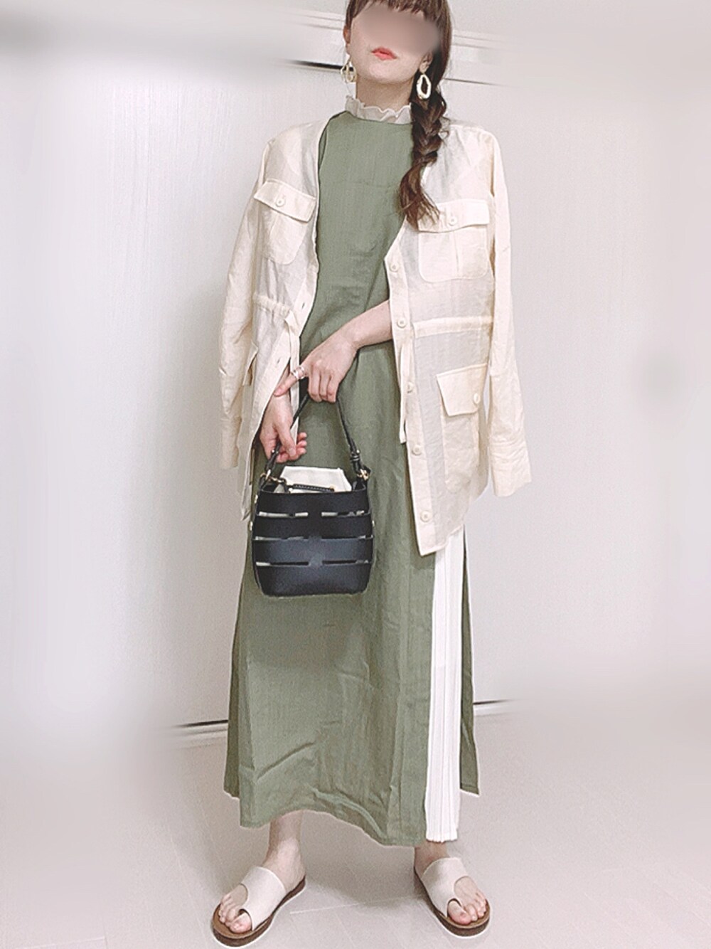Ⓜ︎のワンピース「リネンライクプリーツ切替ワンピース」を使ったコーディネート