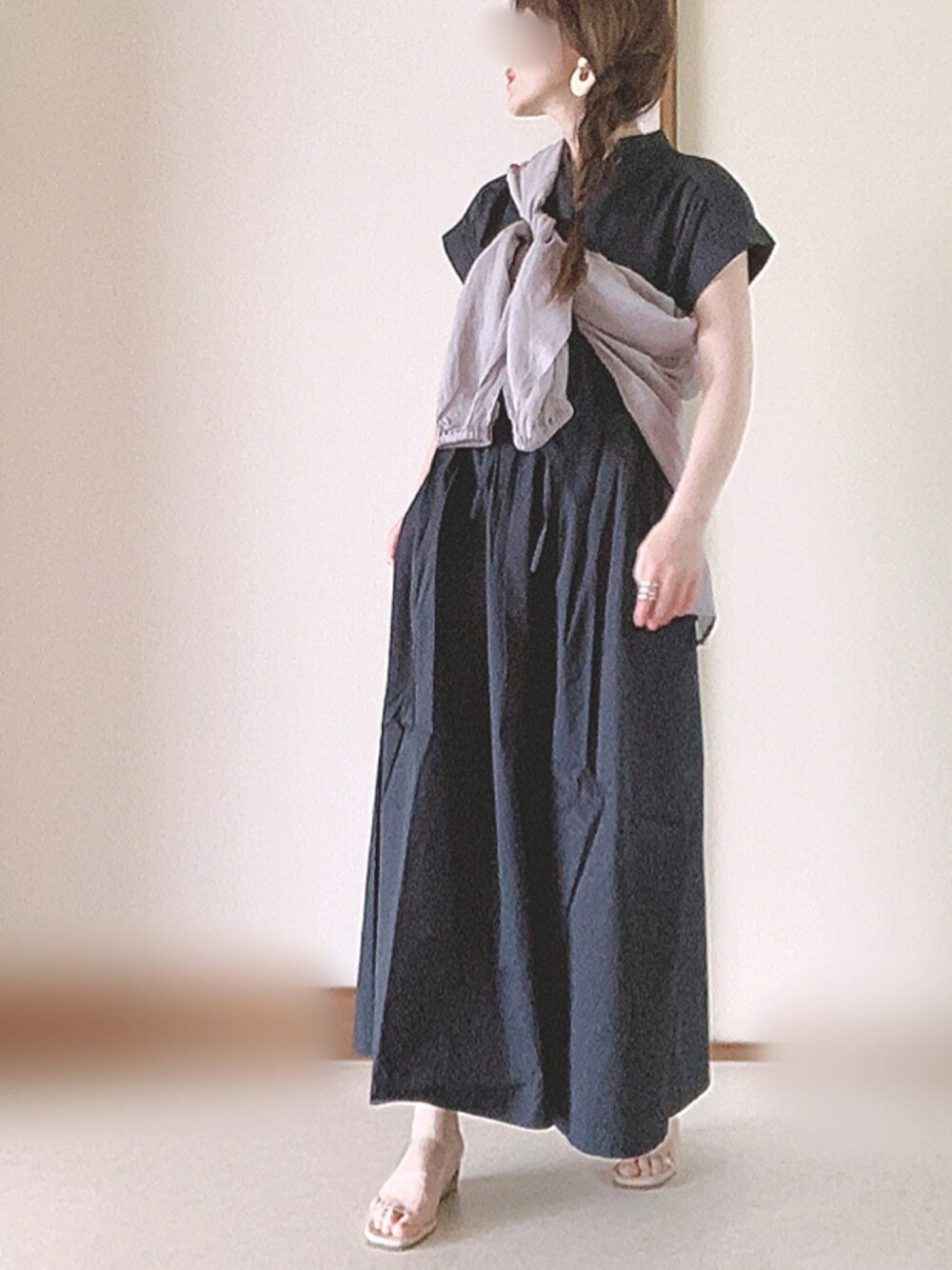 Ⓜ︎のワンピース「バックポイントウエストギャザーワンピース」を使ったコーディネート