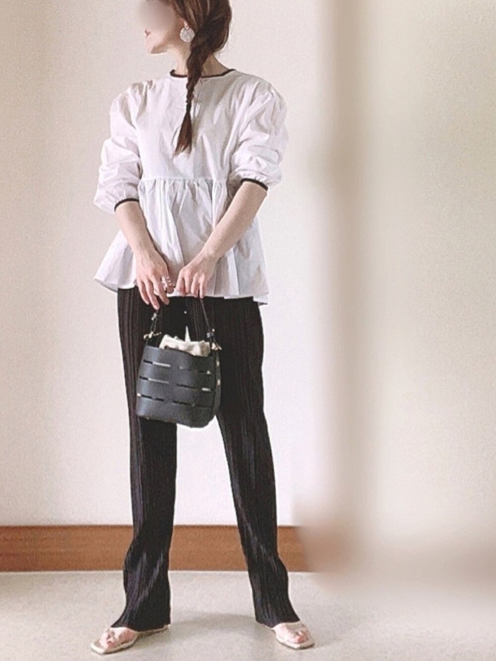 ⚪️sakishima tokyoさんの。 切替フレアブラウス。 パイピングデザインが可愛いフレアブラウス。 シンプルな中にオシャレに使えるアイテムです! ペプラムでシルエットも可愛い🤍