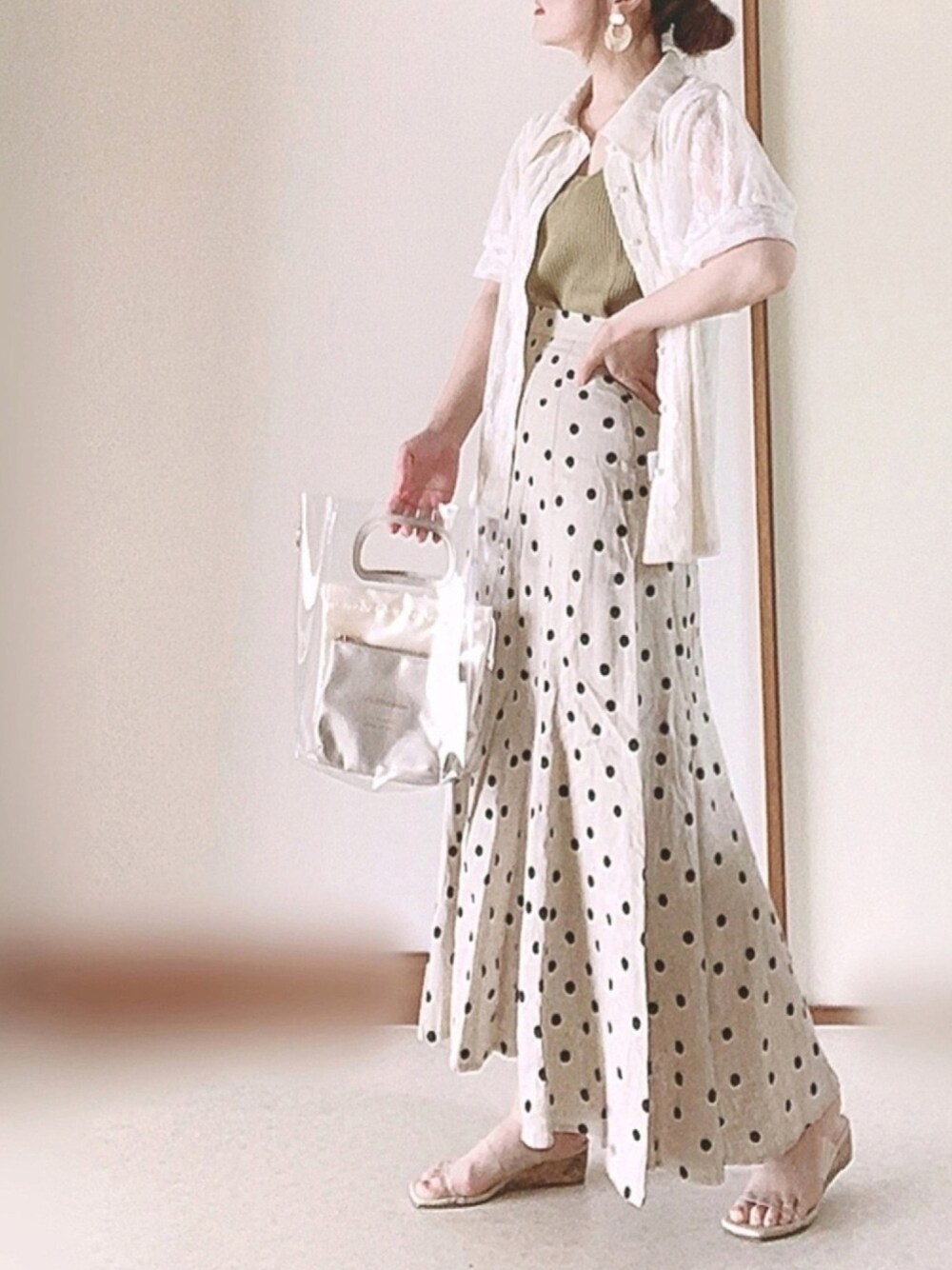 ◽️anownさんの。 ビッグカラー レースパフスリーブブラウス【ファッションインフルエンサーanchan×anown 限定コラボ】 今季トレンドのビッグカラーのレースブラウス。 女子力アップアイテムです✨ ちょっと大人っぽく羽織でコーディネートしてみました。パフスリーブ部分が透けるデザインで夏の涼しげなコーデに。