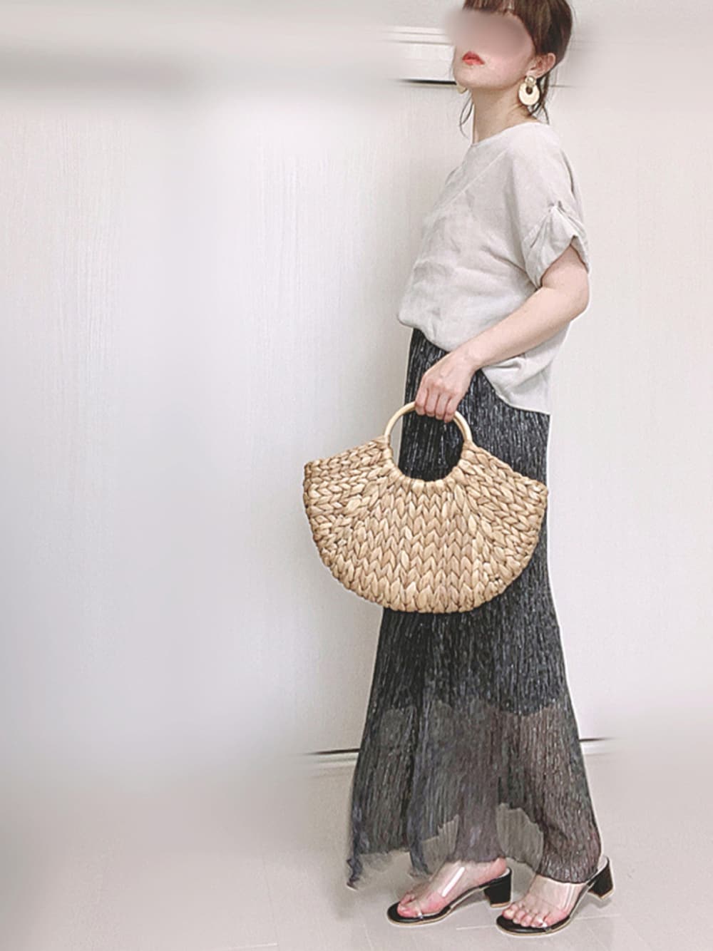 ▪️Chillfarさんの。 シャイニープリーツスカート。 シャイニーの光沢が涼しげで華やかでおしゃれアピール抜群のプリーツスカートです。 透け感が大人女子を引き立てるアイテム。 シンプルにリネンのトップスと合わせました。 ロゴTなど合わせてカジュアルなコーディネートも楽しめます✨