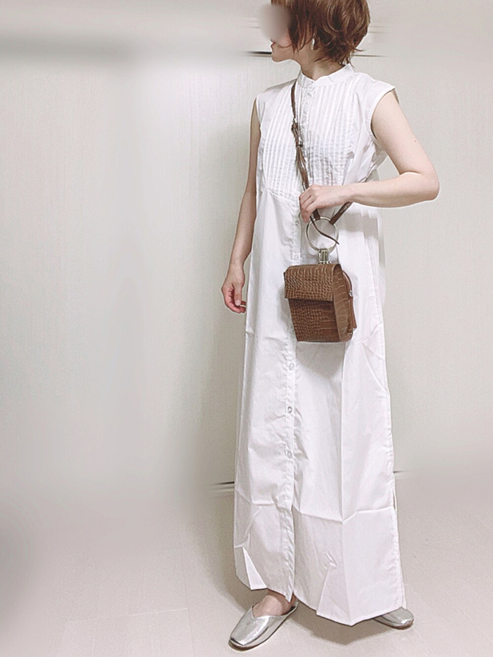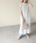 Ⓜ︎のシャツワンピース「ピンタックフレンチスリーブシャツワンピース」を使ったコーディネート