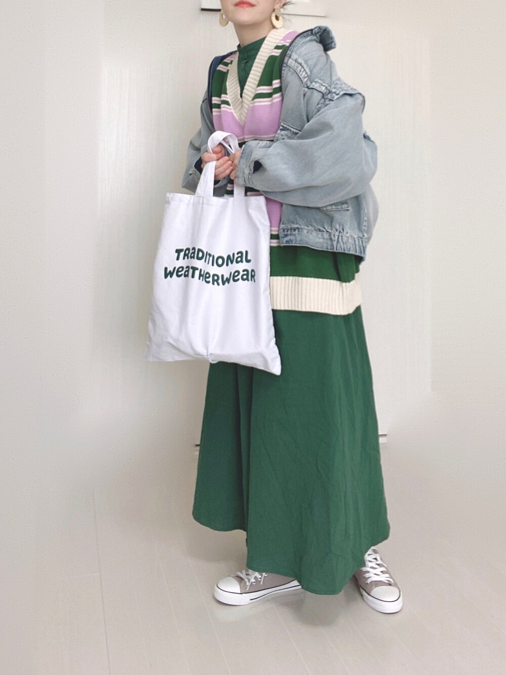 🟩notch.さんの。 バルーンスリーブマキシワンピース バルーンスリーブで、横からのシルエットが特に可愛いワンピース。 トレンドのグリーンがおしゃれです。 notch.さんのニットベストと合わせてみました。 バルーンスリーブを見せたいのでニットベストと合わせるのがオススメです🌸