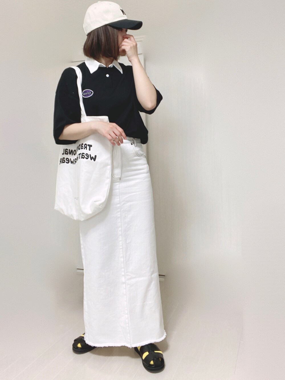 Ⓜ︎のデニムスカート「デニムロングスカート」を使ったコーディネート