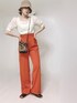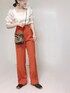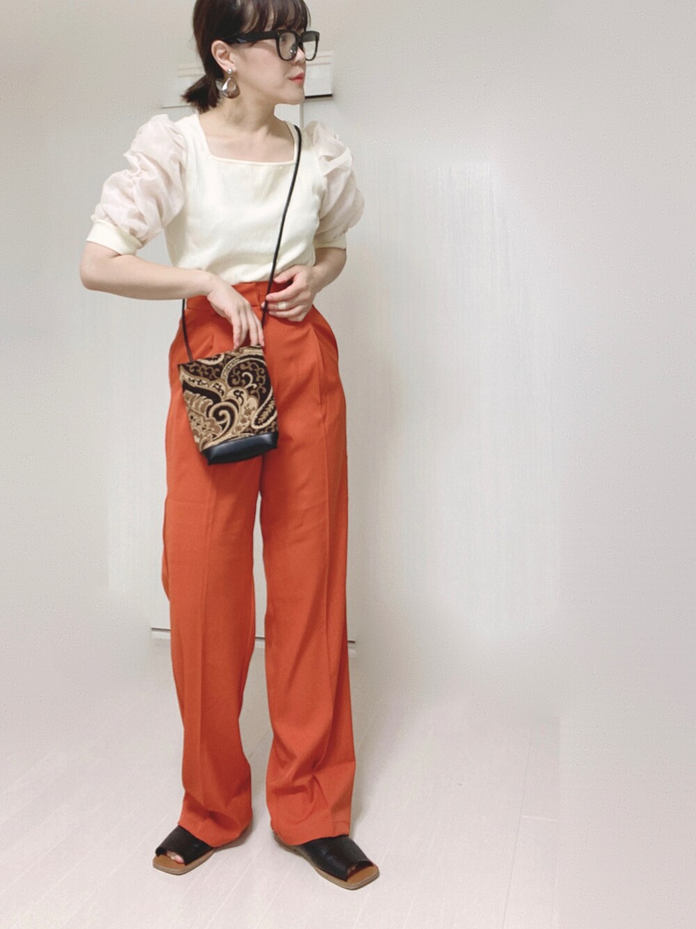 🟧ANGIEさんの。 【新色追加】 ハイウエストセンタープレススラックスパンツ 絶妙なオレンジのスラックスパンツ。ハイウエストで脚長効果もバツグンです✨太さも絶妙でツボです。今オレンジのアイテムにハマっています🌻