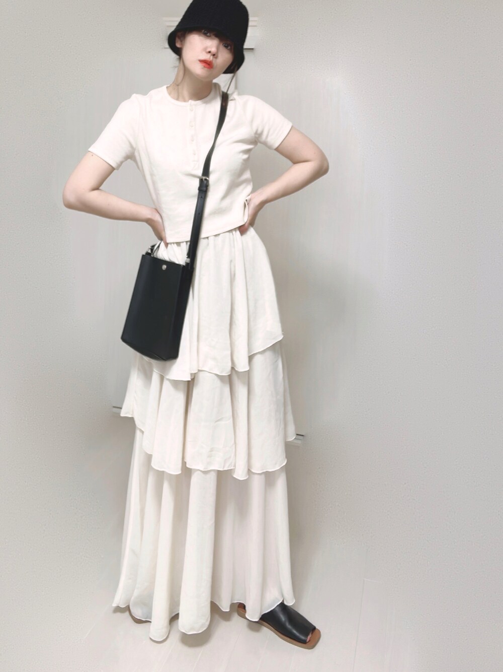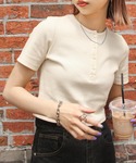 Ⓜ︎のTシャツ/カットソー「テレコショート丈ヘンリーネックTEE」を使ったコーディネート