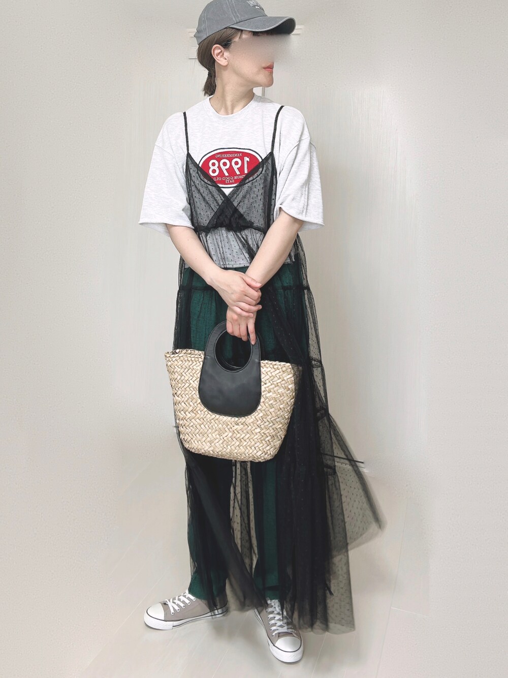 キャップ、バッグ、シアーキャミワンピ ▶︎▶︎▶︎SHEIN