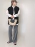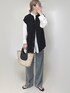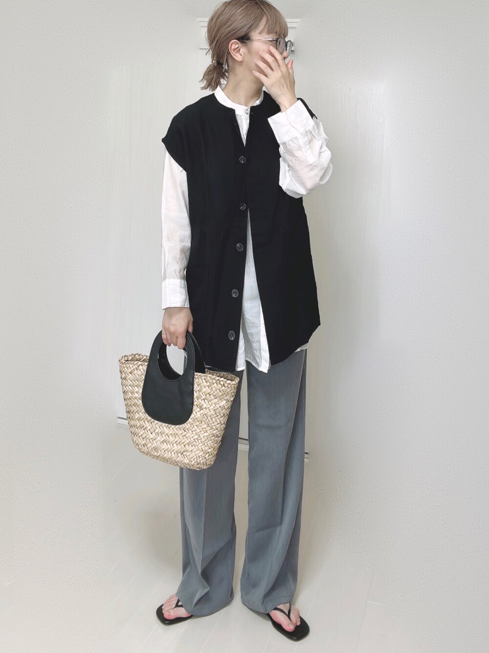 Ⓜ︎のベスト「【miho.a.nicoコラボ】ウエストドロストリネンライクベスト」を使ったコーディネート