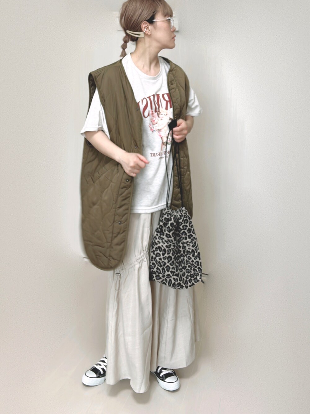 キルティングベスト…NICE CLAUP ギャザースカート…NICE CLAUP