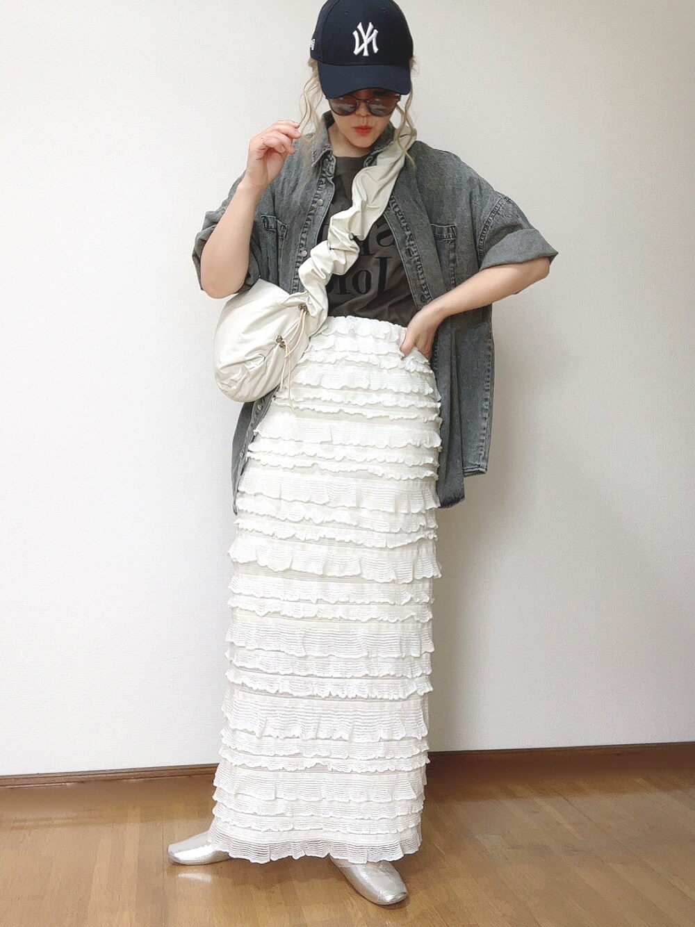 Ⓜ︎のシャツ/ブラウス「デニム半袖BIGシャツ」を使ったコーディネート
