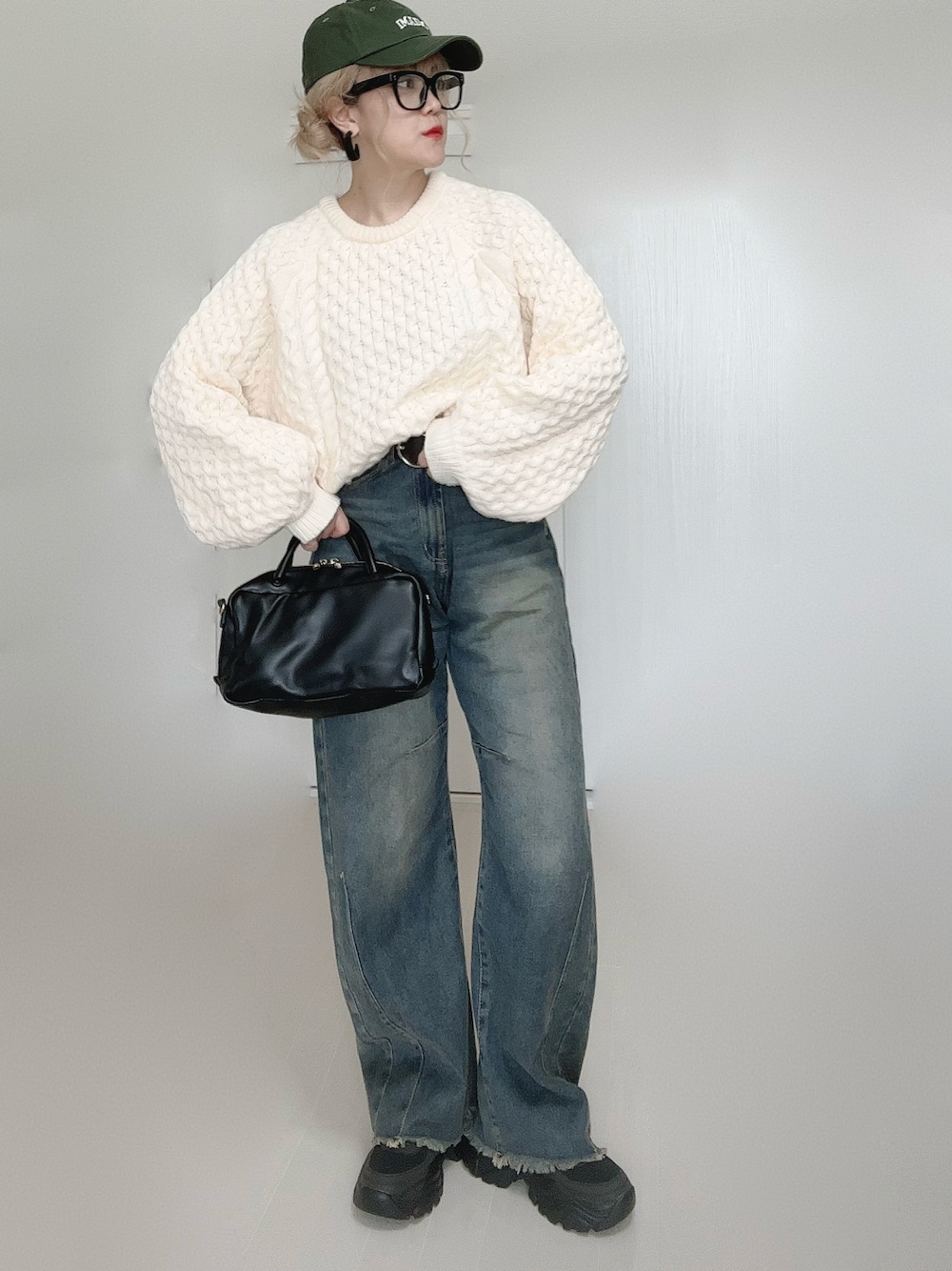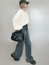 Ⓜ︎のデニムパンツ「[DENIM COLLECTION][販売枚数9万枚突破][お気に入り登録数12万突破][トレンドNo.1デニム][全骨格美脚見えシルエット][サイズ別/身長別画像あり][低身長/高身長/大きいサイズ有]裾フリンジバレルレッグデニムパンツ」を使ったコーディネート