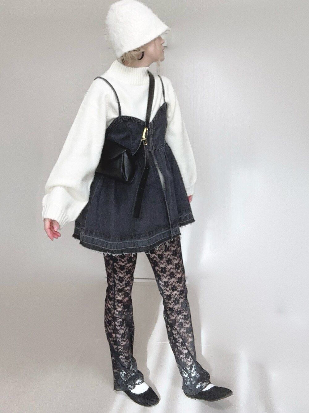 もちもち肌触り◎のハイネックニットにデニムキャミをレイヤードして大人ガーリーなモノトーンコーデにしてみました。 ボリューム袖は華奢に見える効果があるので好きです✨ #PR ____________________________________ tiptop▶︎▶︎▶︎ zozotownにて24時間限定クーポン発行中⛄️