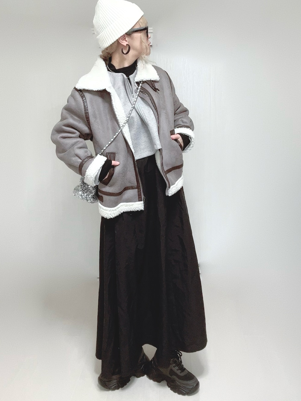 Ⓜ︎のムートンコート「フェイクムートンボアブルゾン」を使ったコーディネート