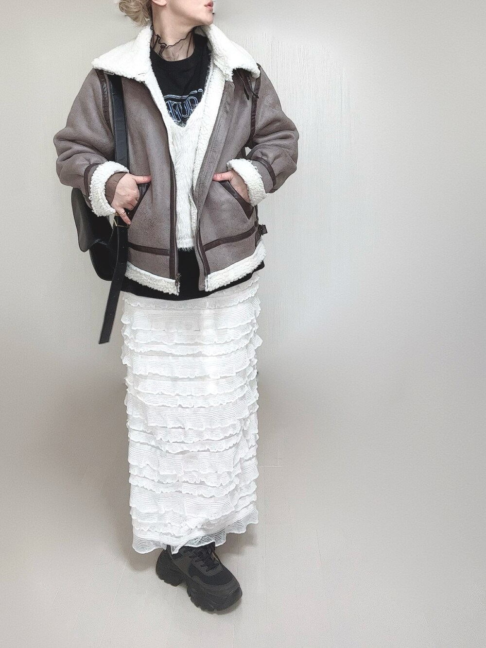 Ⓜ︎のムートンコート「フェイクムートンボアブルゾン」を使ったコーディネート