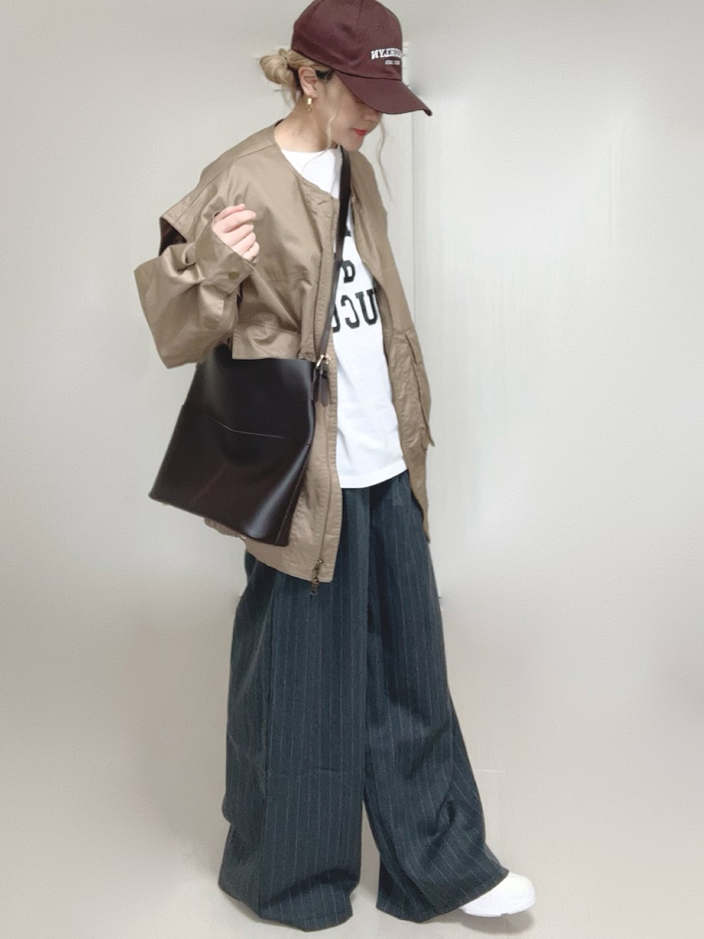欲しかったストライプスラックスをSHEINでお安くGET🫶 キャップとバッグもSHEINです。