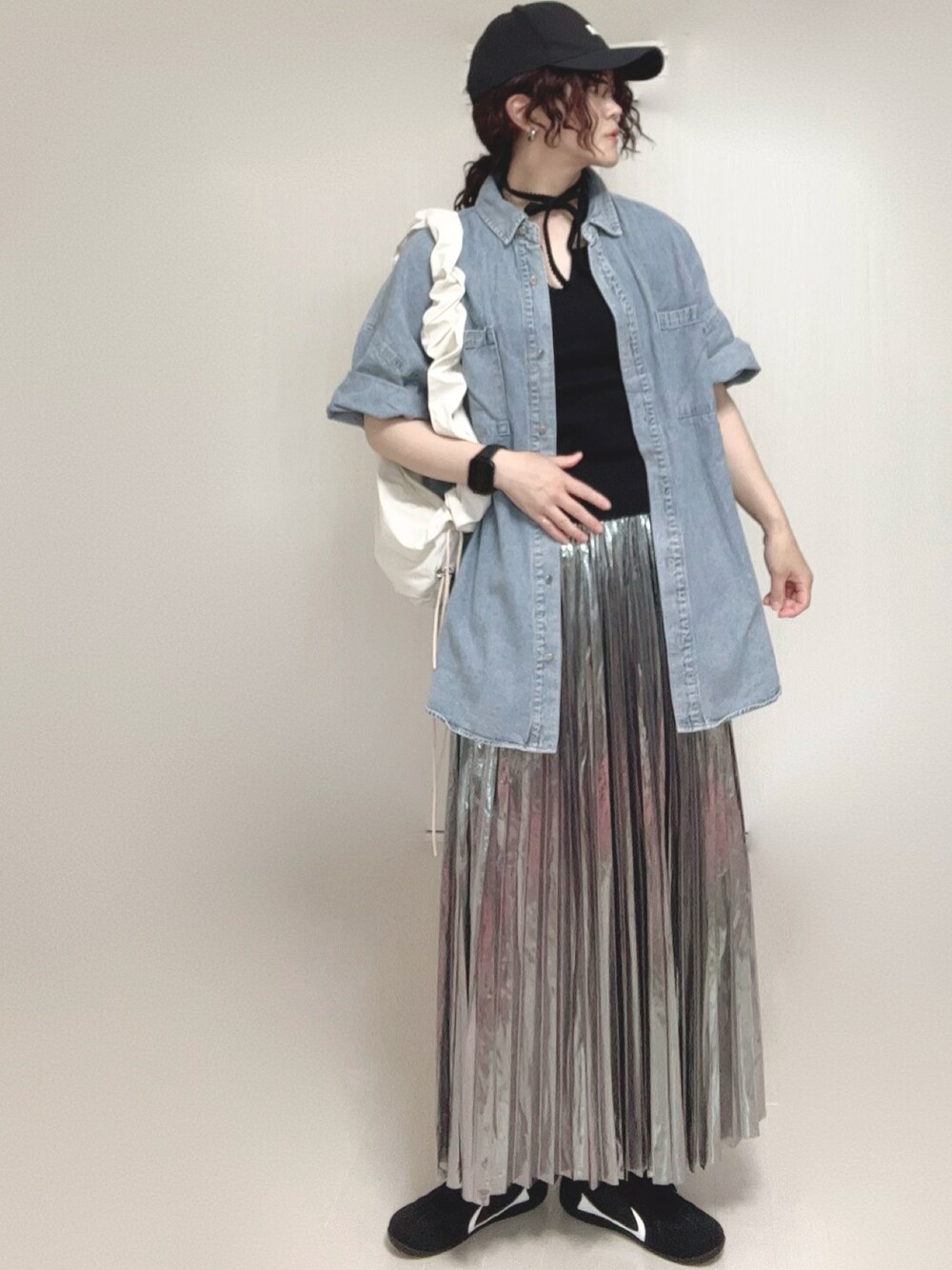 Ⓜ︎のシャツ/ブラウス「デニム半袖BIGシャツ」を使ったコーディネート