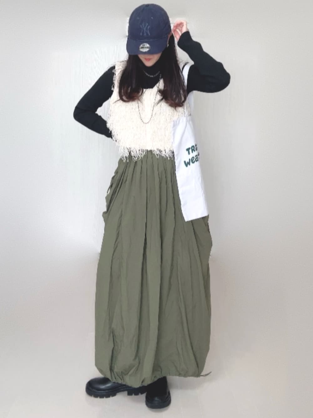 Ⓜ︎のベスト「ループフリンジ2wayベスト」を使ったコーディネート
