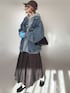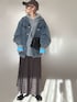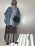 ちょっと春っぽコーデ デニムジャケットの袖から 配色ニットのブルーを見せて着るのが ポイント💡 グレー×ブラウン好き