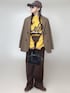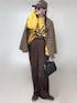 ブラウン主体の マニッシュコーデ キャップ&スニーカー...SHEIN