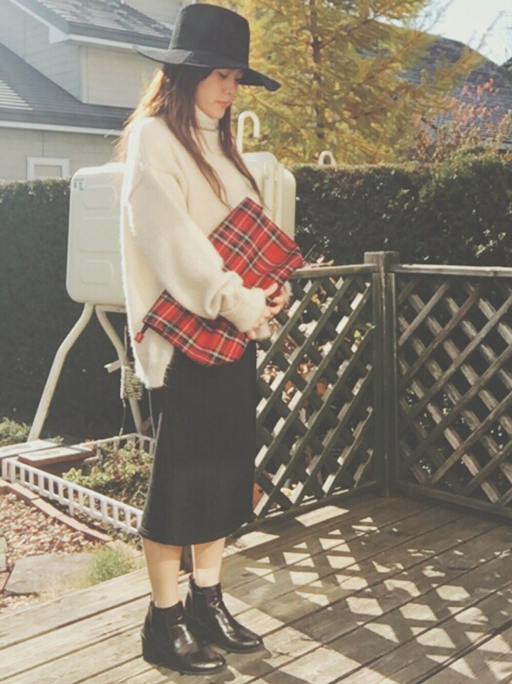 今日もモノトーン。 お気に入りのチェックのクラッチ持ちました♡ やっぱこのニットめっちゃ好き( ・ᴗ・ ) 久しぶりにハット被ったなぁ〜😆