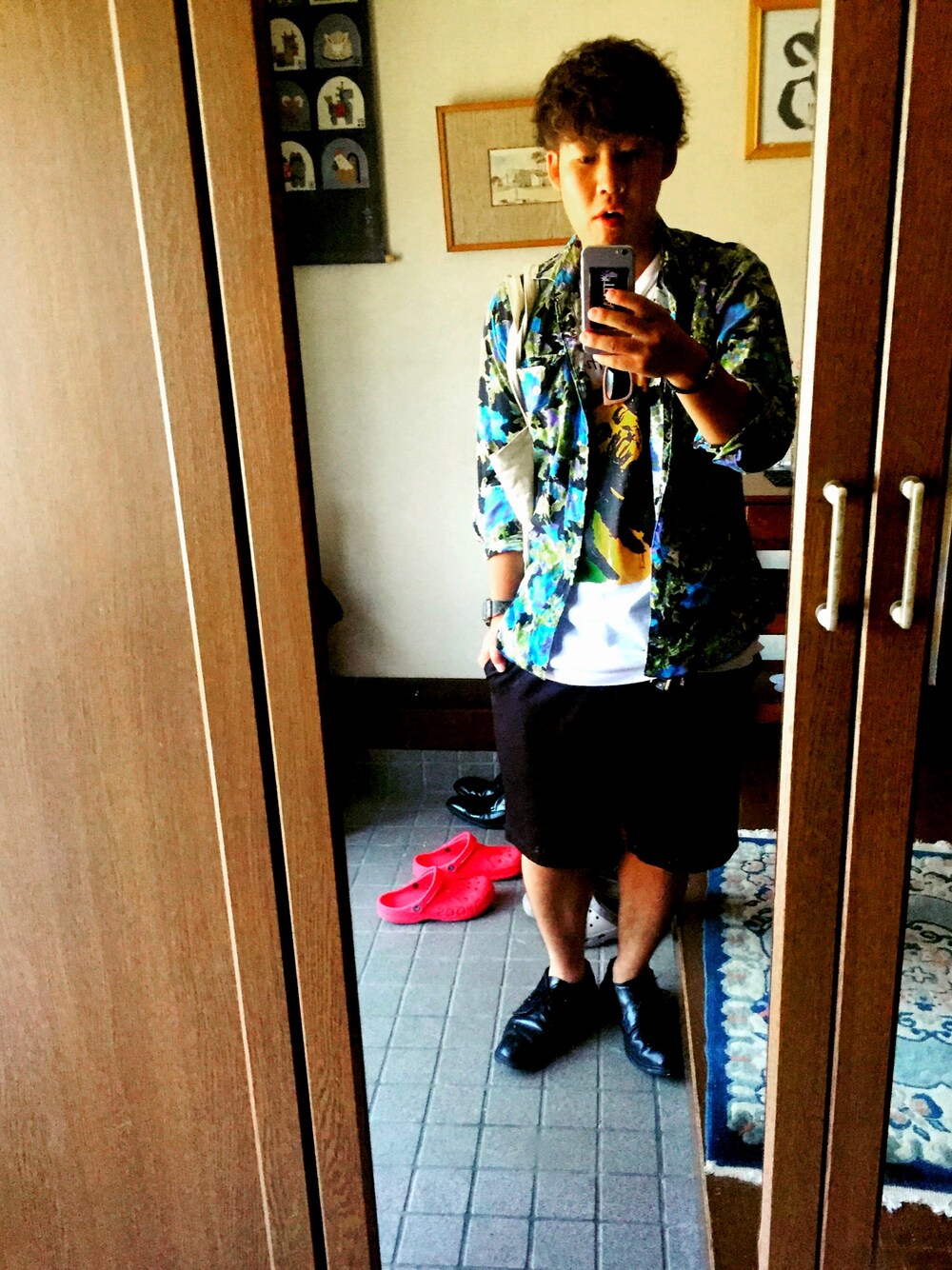 古着のみでコーディネート! パンツはスラックスをカットオフしましたー*\(^o^)/* 時計は海外限定のG-SHOCKです、