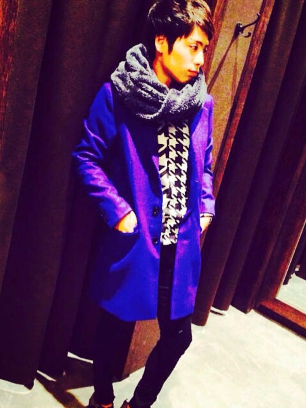 シューズ、インナーを千鳥柄でまとめ 黒のスキニーパンツで足元をスッキリ見せ 発色の良い青のチェスターコートを着ました。 千鳥柄には発色の良い赤や青 明るい色に合わせやすいです。