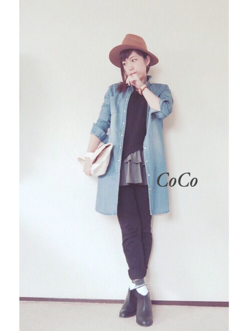 こんにちは◡̈ 久しぶりの投稿です◡̈⃝⋆* 今日は、フォローさせて頂いている カミさんの『 神フェス7 』 Oct.8,2015〜Oct.12,2015 に参加させて下さい(ت)♪ (詳細は小窓へ) ①自分なりの秋色コーデは、 『自分らしさ』、『女性らしさ』 を忘れないように、トップスに よーく見るとフリルが♡ ブラックコーデに映える様に ワンポイントでベージュのハット、 神フェスに必須のデニムワンピを♬ そして… 久々のフェスに参加できる事が 嬉しくもあり、楽しくもあり、 皆さまとのファッションの交流が 出来るのがとても嬉しく思います。 マイペースに、無理なく、 WEARをしていこうと思っています。 新しくフォローして下さった方々、 フォロワーの皆さま、これからも マイペース投稿ですが、温かい目で 見てくださいね◡̈⃝⋆* 本日の投稿をご覧頂き、 ありがとうございました♡ 皆さまのところへはゆっくり 伺わさせて下さいね。 By . CoCo Oct . 12 , 2015