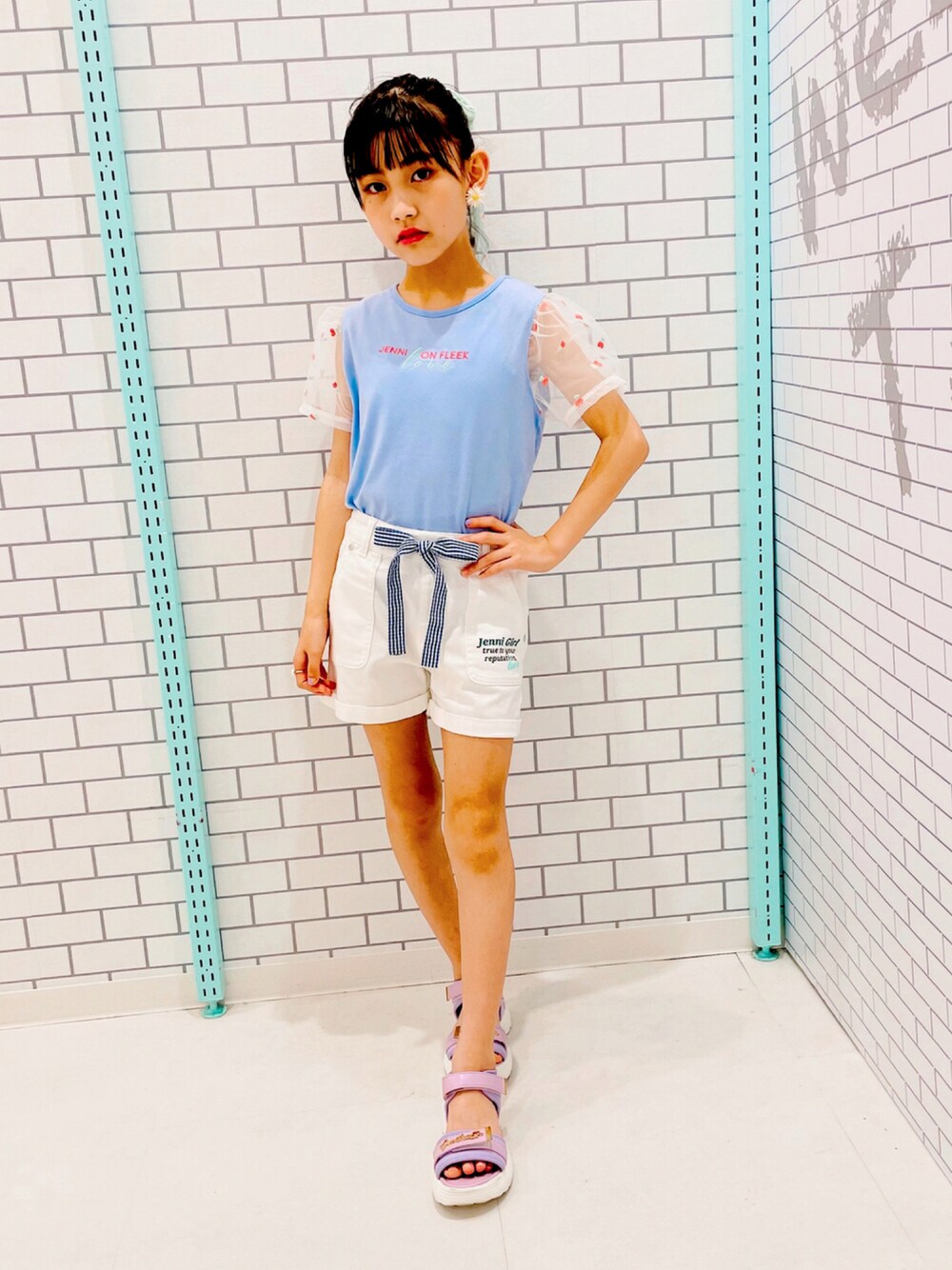kokonenのTシャツ/カットソー「チェリーチュールスリーブTシャツ」を使ったコーディネート