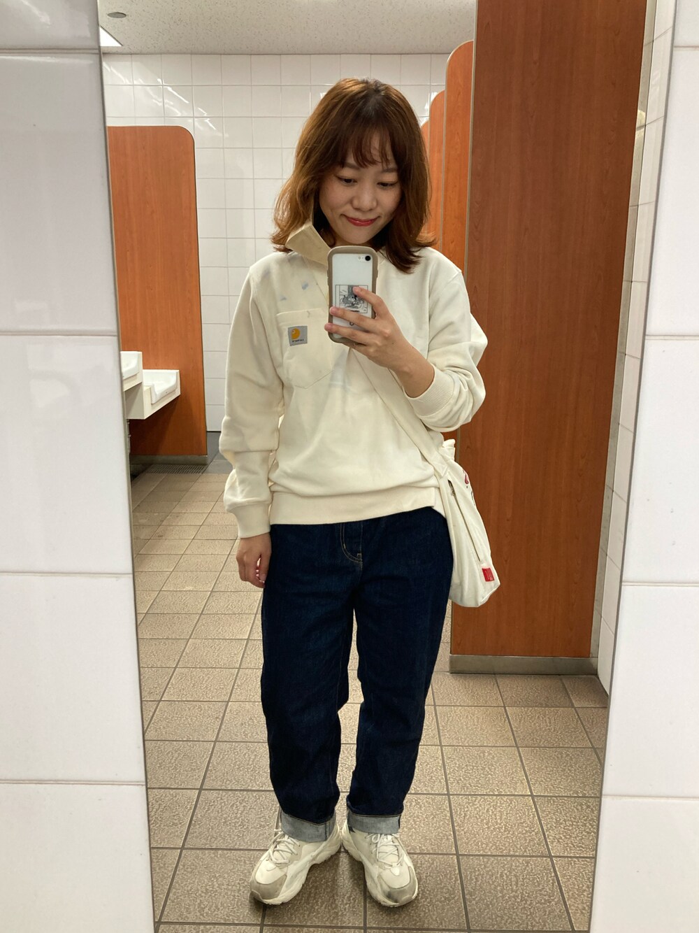 湿気で髪がモワモワでも元気に 私は古着のCarharttを着る。