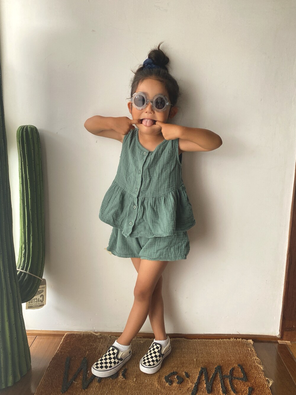 りんのスニーカー「VANS ヴァンズ SLIP ON(14-18) スリッポン V98CS BLK/WHT CHK」を使ったコーディネート