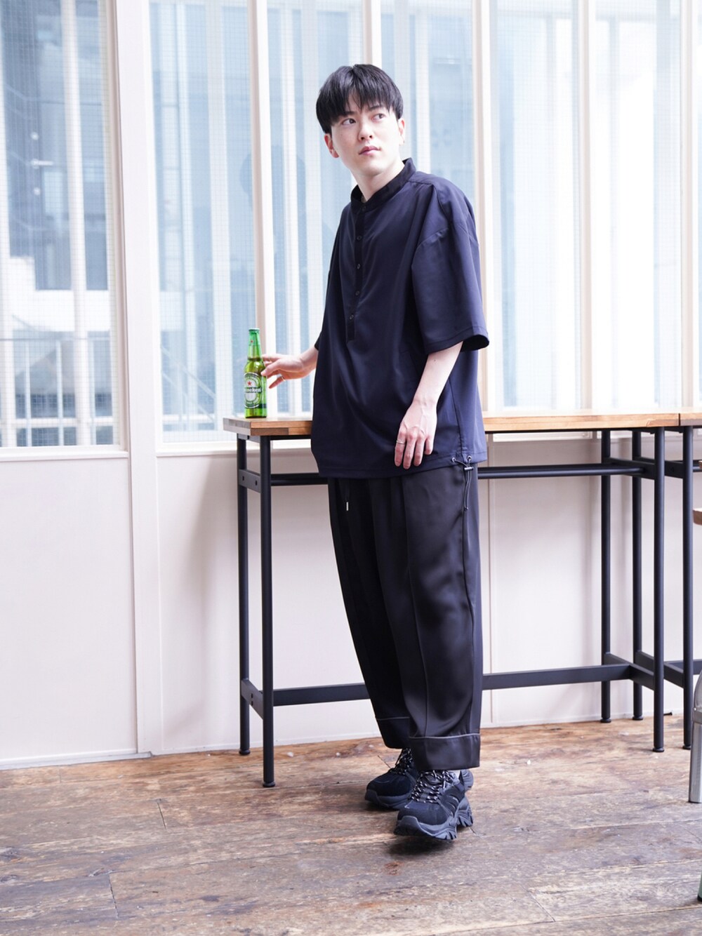 いつも閲覧ありがとうございます‼️ Instagram⇨kom_casperjohn Casper John21SS ヘンリーネックバルーンビッグTシャツを使ったコーディネート。 昨日に引き続きヘンリーネックTシャツの紹介✨ 今回はネイビーをチョイス👉 グレーの柔らかい印象とは違って、 少し大人っぽく締まった印象を与えてきれます。 ボトムにパイピングパンツを合わせて抜け感を出さしても◎