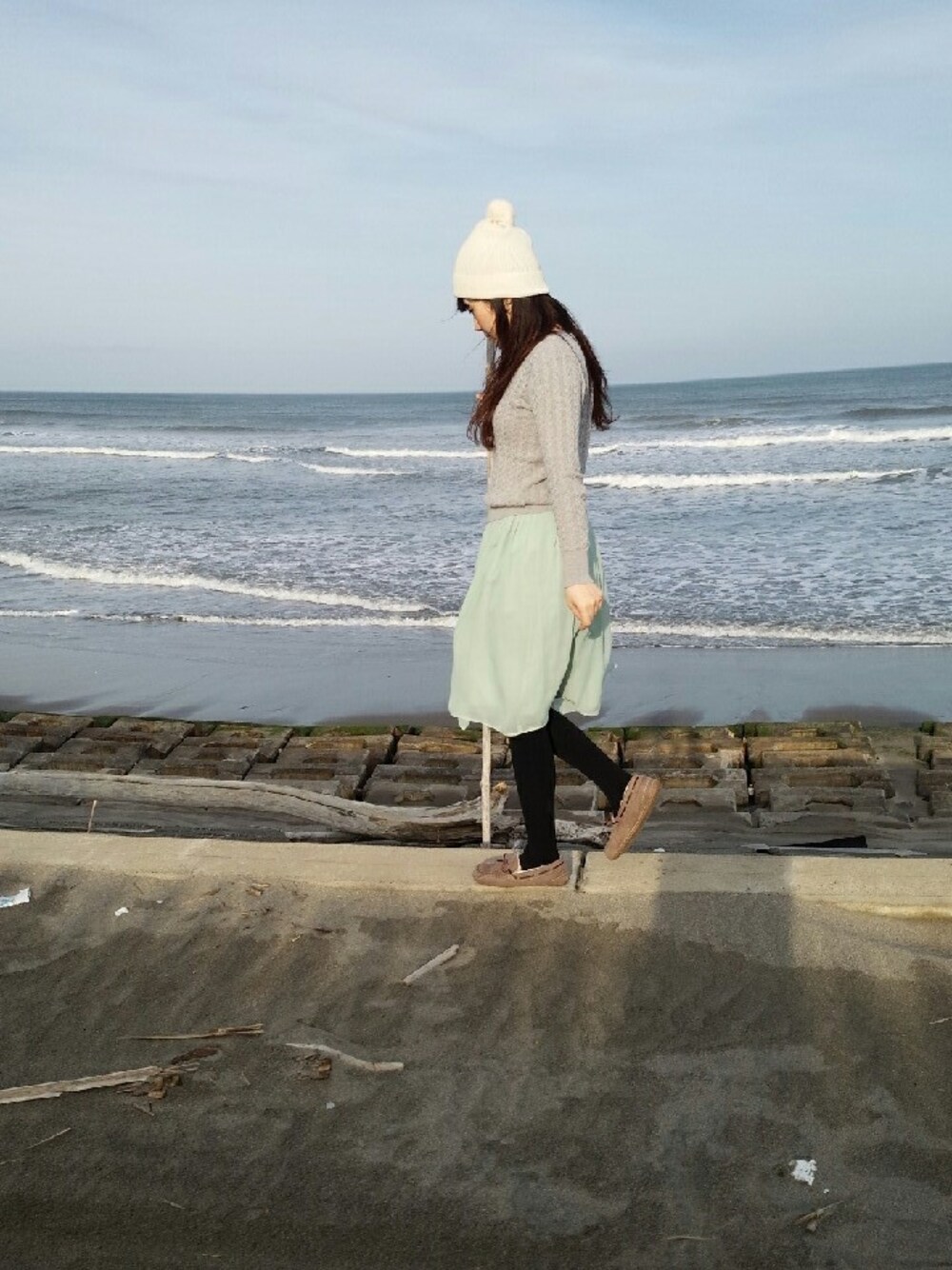 無印良品のニット帽にファーポンポンを付けました 春一番が吹いた日 2月なのにとても暖かかった