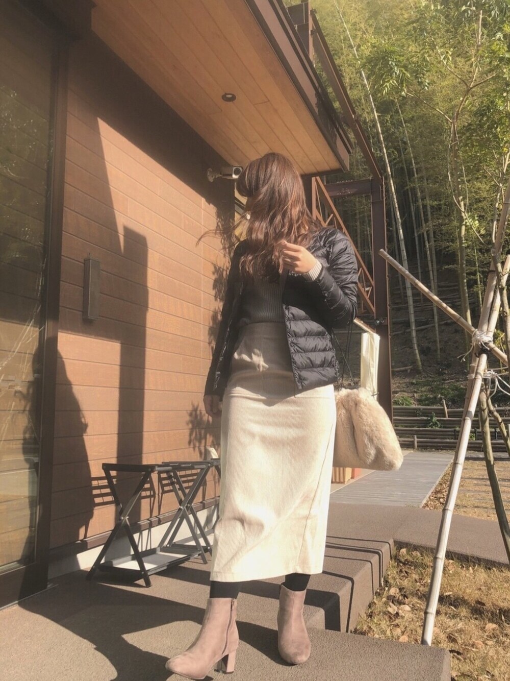 kanのスカート「コーデュロイタイトロングスカート」を使ったコーディネート