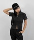 comachiのカーディガン/ボレロ「【LVEU.】ダブルジップラメニットトップス / トップス カットソー リブ ラメ 半袖 ジップ ファスナー ダブルジップ 襟付き カーディガン 羽織り Wジップ ショート コンパクト クロップド ブラック グレー ブルー」を使ったコーディネート