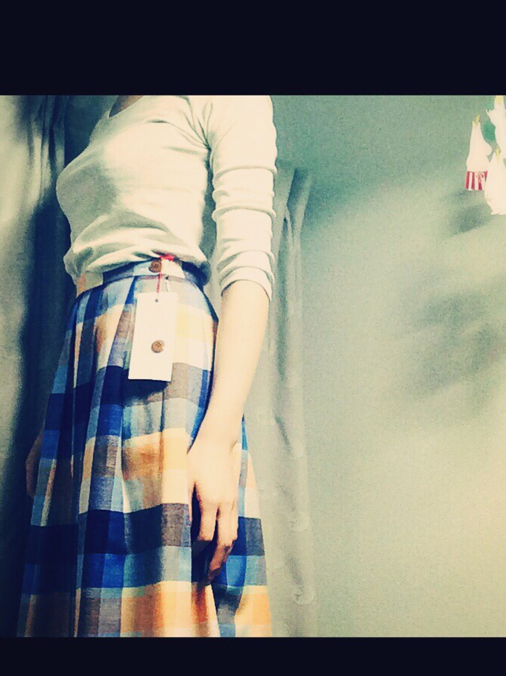 まだタグついてる笑 これにサスペンダーつけて、出掛けたいな。 ログハウスでビスケット焼いてるおばちゃんみたいなスタイル。