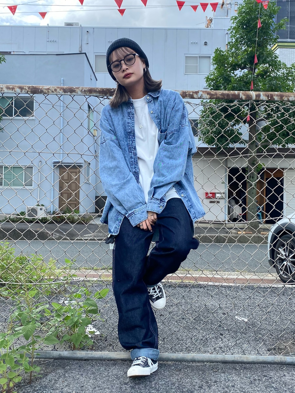 秋はデニムシャツ毎年人気です😊☝️ カジュアル系のイメージが強かったのですが、今年はストリート系のコーデでもトレンドですね🥺⭐️ レディースサイズなのに、凄いビックでMでも全然ゆとりがあります! シャツメインにしたかったので、会えてシンプルな色味と揃えました🥰