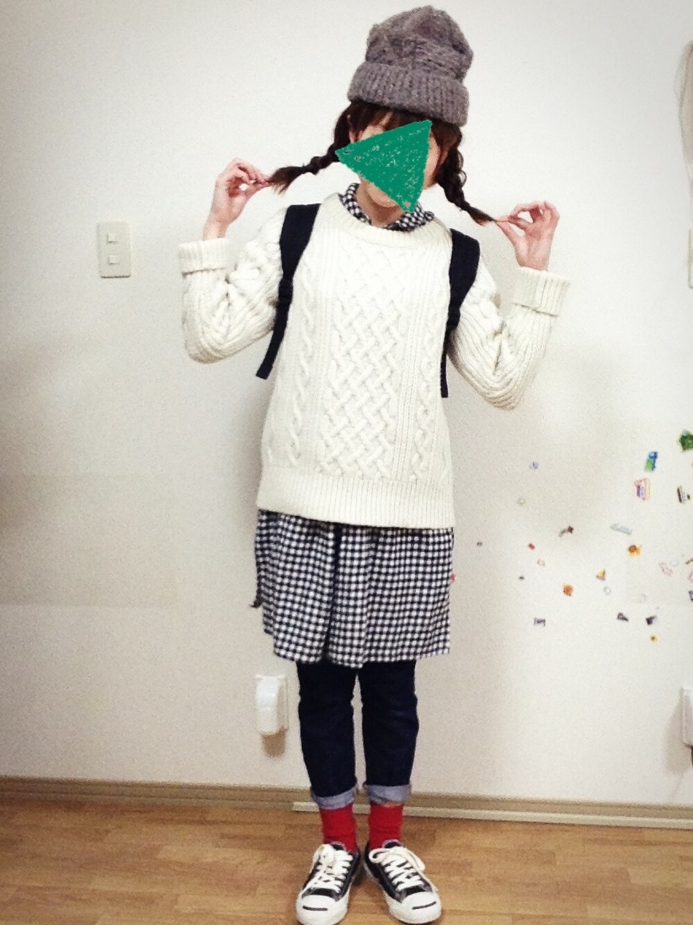 な◡̈⃝⋆のニット/セーター「BEAMS BOY / 3ゲージ アラン クルーネック ニット」を使ったコーディネート