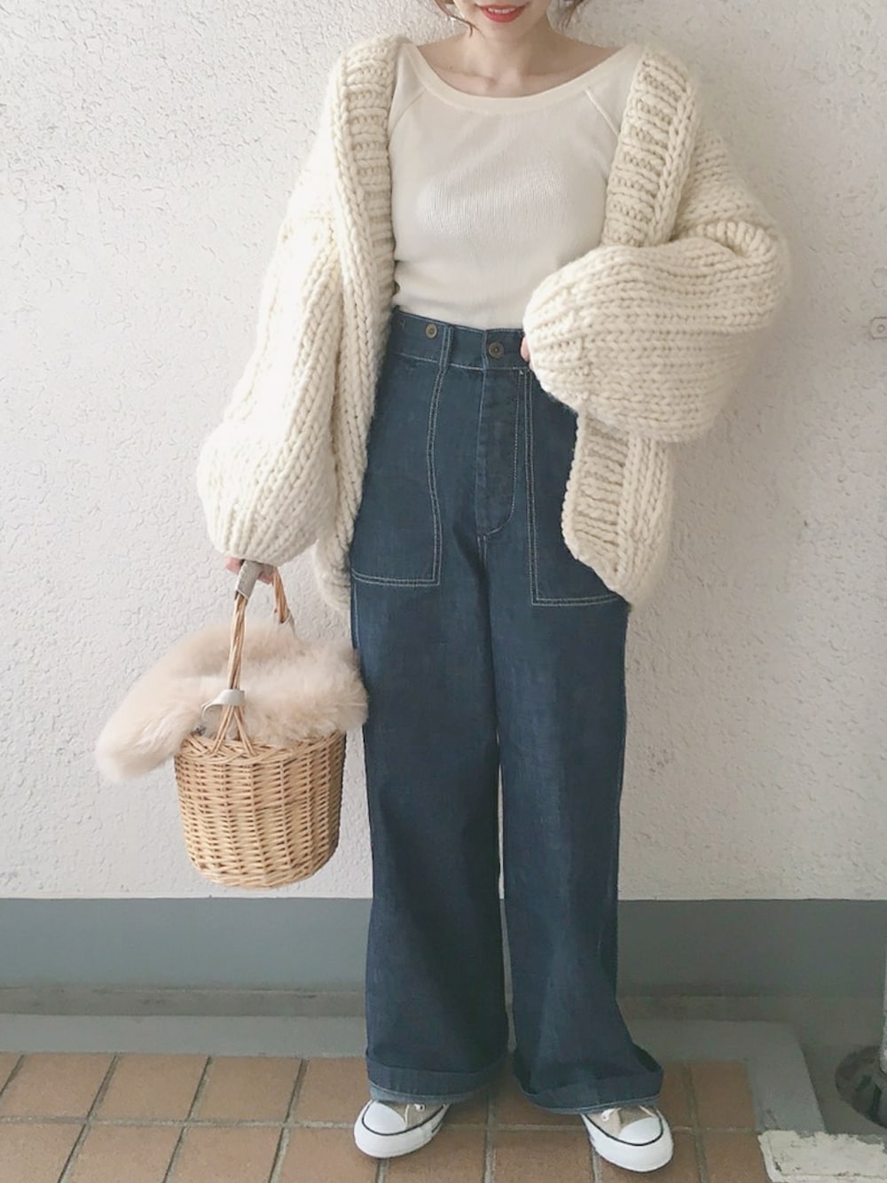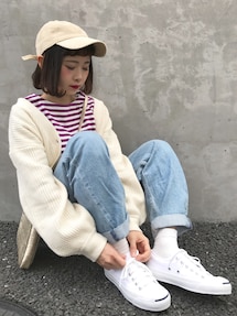 ゆるゆるな休日コーデ❤️ 身長が低い私だと丈が少し長いけど折り返しても可愛いデニムです😳 Instagram👉komasan.1106