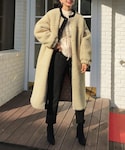 コマさんのその他アウター「コーデュロイポイントボアコート」を使ったコーディネート